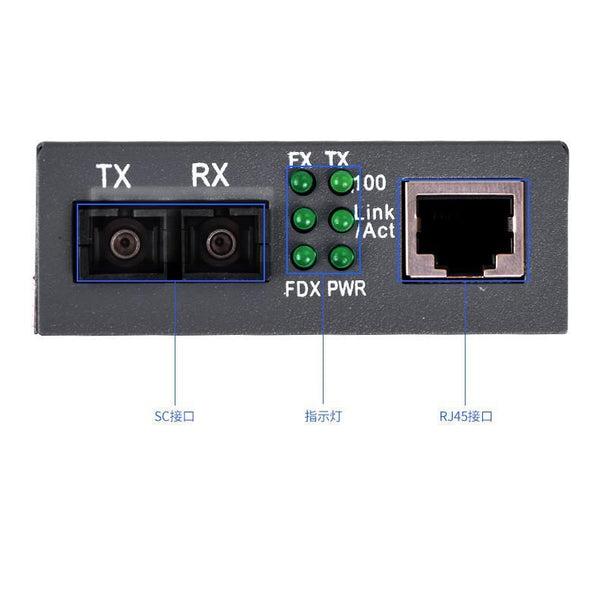 Product Specifications Converts 100Base-FX fiber optic media to 10/100Base-TX twisted pair media. Compliance with 10/100Base-TX and 100Base-FX. Compliance with IEEE 802.3u Ethernet standard Duplex mode: full or half duplex mode. Fiber type: 850nm multi-mode dual fiber (RX/TX) Data transfer speed: 10/100Mbps Typical distance: 2KM Connectors: RJ45-UTP and dual fiber SC Input:AC100-240V 5V/0.2A 50/60HZ Output: DC5V6 LED display for Power, FDX/Col, FX (Link/Act), TX (Link/Act), FX 100, TX 100 Dimensions: 95x71x26mm (LxWxH)Ambient Temperature: 0 ~ 70 degreeHumidity: 5% ~ 90%
