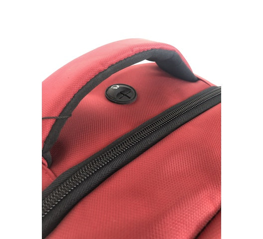 Officepoint Laptop bag BGL-016 15.4” Backpack Key Features This durable laptop bag is made with strong fabric design. Water resistant fabric. Carry’s up to 15.4″ Laptop size. Has 2 front pockets, 3 small compartments- 1 hidden in front. Has 2 side mesh water holders. A headphone jack punch hole. A Right hand power bank punch