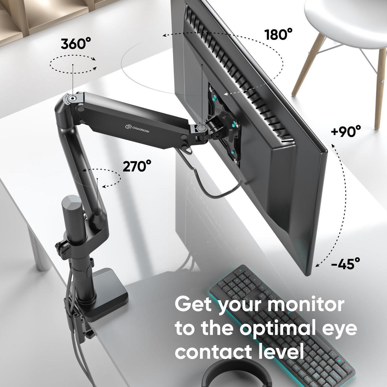 ONKRON Single Monitor Desk Mount for 13-34 Inch Screen up to 26.5 lbs – Gas Spring Monitor Mount Vertical 75×75 & 100×100 VESA – Height Adjustable Monitor Arm Desk Mount Swivel Tilt Rotation Black