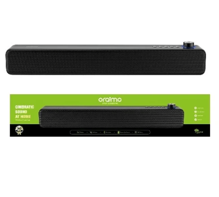 With a frequency response range from 60 Hz to 20 kHz, the Oraimo OBS-91D ensures a well-rounded audio performance, while built-in EQ modes and potentially a microphone for hands-free calling (if supported) enhance its functionality. Powered by an AC adapter that supports global voltage ranges, this sound bar provides reliable performance for various home entertainment setups.