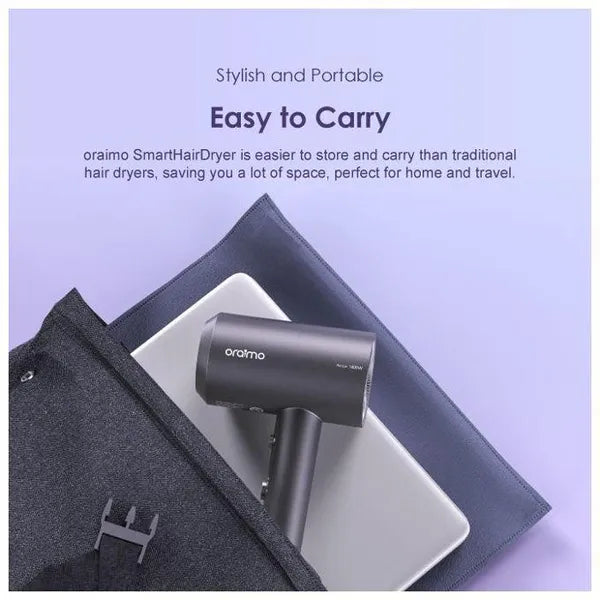 Oraimo OPC-HD1 Smart Hair Dryer – 1800W Key Features Real 1800W Professional AC Motor: Dry your hair within 5 minutes with this 1800W powerful super wind force that quickly dries your hair while causing no harm to your scalp. Negative Ion Technology: Give your hair shine with over 2 million negative ions that reduce protein damage and preserve the natural moisture of your hair while drying, helping to eliminate frizz and keep your hair hydrated. 3 Speed and 2 Heat Settings: Multifunction settings meet your needs with 3 adjustable speeds and 2 different heat settings for maximum control and versatility. It includes a cool shot button for complete drying and styling. Overheating Safety Protection: 110 ℃ temperature control protection prevents extreme heat damage, helping to protect your hair’s shine. The oraimo hair dryer can quickly dry hair while providing the best care. Stylish and Portable: The oraimo Smart Hair Dryer is easier to store and carry than traditional hair dryers, saving space and making it perfect for home and travel.