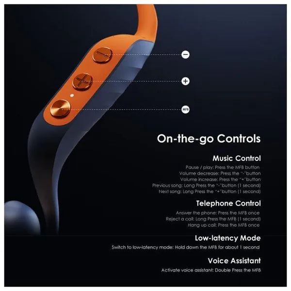 Oraimo OPN-40D Open Circlet Open-ear Bluetooth Sport Headphones Key Features BT Version: V5.0 Range: 10m Battery Playtime: Up to 16 hours playtime Charge Input: Type-C Truly Open-ear Design: Free and comfortable with no bud jamming or pain even after prolonged use. Open to Full Transparency: Increased situation awareness with open-ear design for a safe and connected listening experience. Open-ear Design for Health: Safe and hygienic touch. Ergonomic & Secure Fit: Matte finish provides additional grip, ensuring the earbuds stay in place no matter how much you move. HavyBass™ Technology: Enhanced sound and bass with 16mm large dynamic drivers and advanced air conduction. IPX5 Waterproof & Sweat Protection: Resistant to water and sweat for uninterrupted use.