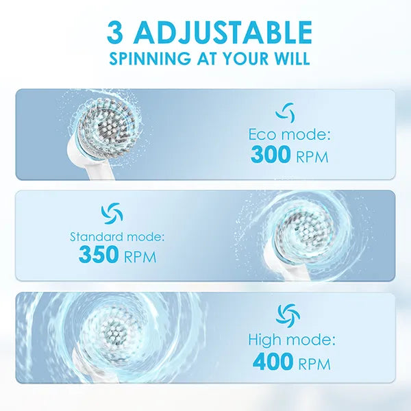 Oraimo OSS-204A Ultra Cleaner Scrubber Cordless 1.5H Runtime Electric Spin Brush with 5 Replacement Heads Key Features 5 Replacement Brush Heads: Versatile cleaning with a flat brush for bathtubs, pointed brush for corners, scouring pad for ovens, cloth brush for flat surfaces, and cleaning ball for pots. 3 Spin Speeds: Adjustable speeds of 300, 350, and 400 RPM for daily or deep cleaning. Efficiently tackles soap scum, grout, and stubborn stains. IPX7 Waterproof: Safe for daily use with all-around protection including over-charge, over-current, and over-voltage safeguards. Type-C Charging: Fast-charging with up to 1.5 hours of continuous use. Ideal for 2-3 cleanings per charge. Sturdy Bristles: Anti-scratch bristles for effective cleaning without damaging surfaces. Use with detergent for better results.