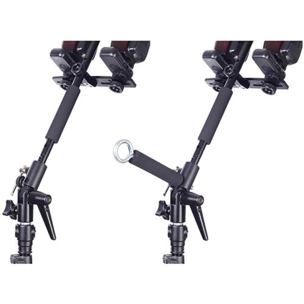 Phottix multi boom 16″inch & Varos II BG combo – Allows a full 180-degree tilt Key Features: Mounts one or more flashes so that they are centered on the umbrella Allows a full 180-degree tilt Fast and easy set-up Anti-slip foam handle for hand-held use Eyebolt handle grip provides easy access to a handle and a point to attach battery packs or small counterweights