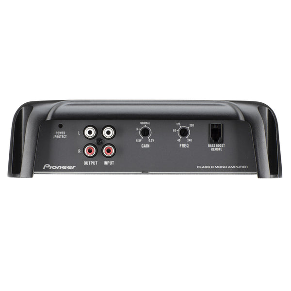 Pioneer GM D8701 Mono Car Audio Stereo Amplifier Key features; GM Digital Series Monoblock Class D Car Amplifier Wired remote bass level control included Variable Bass Boost Preamp RCA outputs to daisy chain multiple amps 3-way protection circuitry