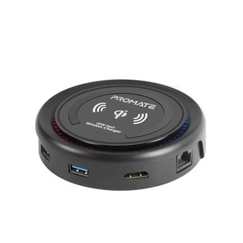 Promate CenterHub 7-In-1 USB-C Hub Price in Kenya is KShs.6000.Get connected and charged up with CenterHub, an all-in-one hub that simplifies your USB-C connectivity. The 10W fast charging wireless pad charges up any wireless charging enabled smartphone in a jiff while having the flexibility of connecting other peripherals through the dual USB 3.0 ports. The 4K HDMI port provides high, crisp-clear image quality, in addition to a 1Gbps ethernet port for ultimate connectivity. This USB-C Hub also includes a **Charging Bridge** that lets you charge your laptop at 100W power delivery while supporting all other ports. All these built-in features make CenterHub ultimately the portable and comprehensive peripheral solution.Buy Promate CenterHub 7-In-1 USB-C Hub at Adishnetservices Kenya
