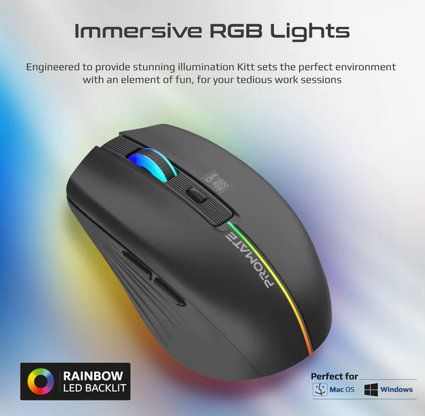 Promate Sleek Wireless Rechargeable Mouse (KITT) – Adjustable 1600 DPI, 500mAh Rechargeable Battery, RGB Lighting – Kenya