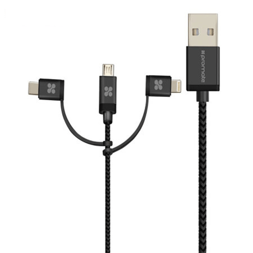 This incredibly useful cable from Promate combines the three most commonly used connectors on the market ** Apple Lightning, USB-C and Micro USB ** into one convenient and portable product. Ideal for charging your smartphone or tablet, or syncing data or media, having this cable on hand is always useful ** it**s a virtual guarantee that your friends, family, colleagues and you will have a device that**s compatible.