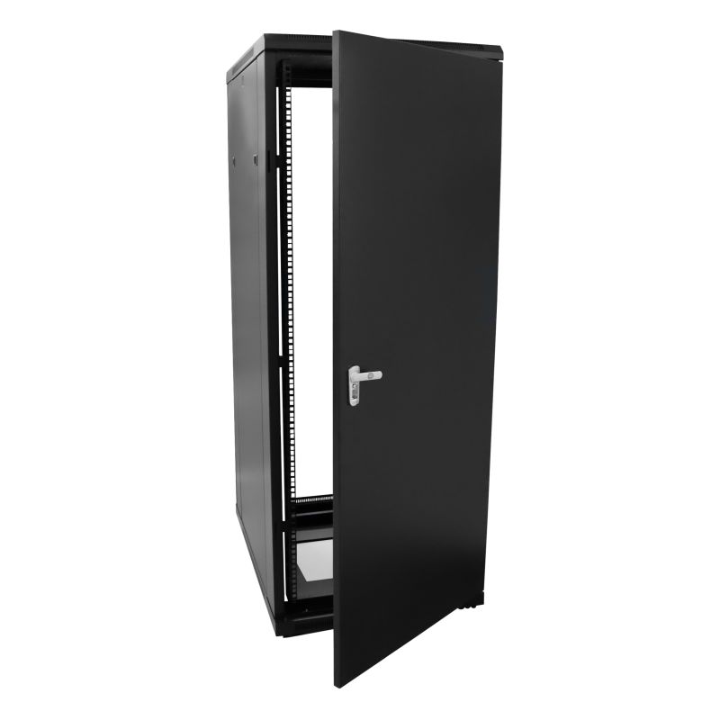 The 32U rack is used to introduce passive or active equipment inside, allowing it to be visible and protected under a secure (steel) and locked structure. Compatible with fiber optic, data cable, or coaxial cable installations, it allows the different technologies to be grouped in the same cabinet. Designed for ground installation. Supplied assembled.