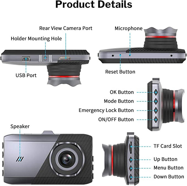Relee Three Cameras 4”inch Tripple Lens Car Dash Cam – 3-lens DVR, motion detection, loop recording, reverse parking, 1080p – Kenya