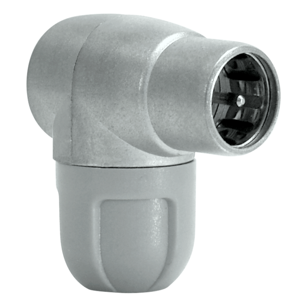 Fast F male connector angled with shield for RG6 coaxial cable.