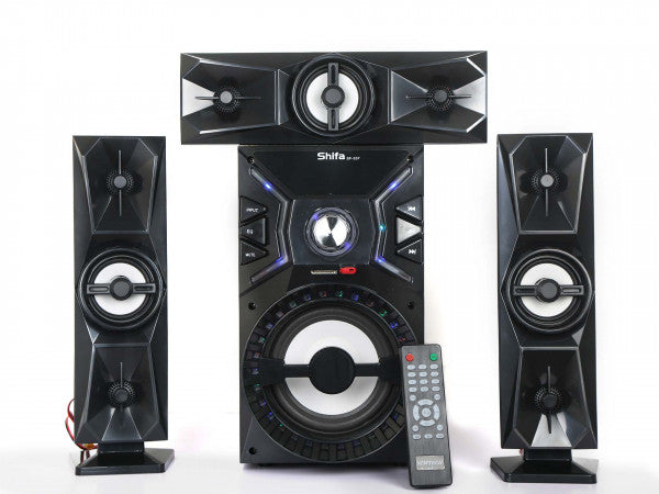Shifa SF-337 3.1CH 10000W Sub Woofer Sound System Key Features Channel: 3.1CH Sound Output: 10000W PMPO Hightech Multimedia: Yes Superb Quality Sound: Yes Bluetooth Enabled: Yes FM Tuner: Yes USB Support: Yes Wireless Remote Control: Yes LED Display: Yes 1 Year Warranty