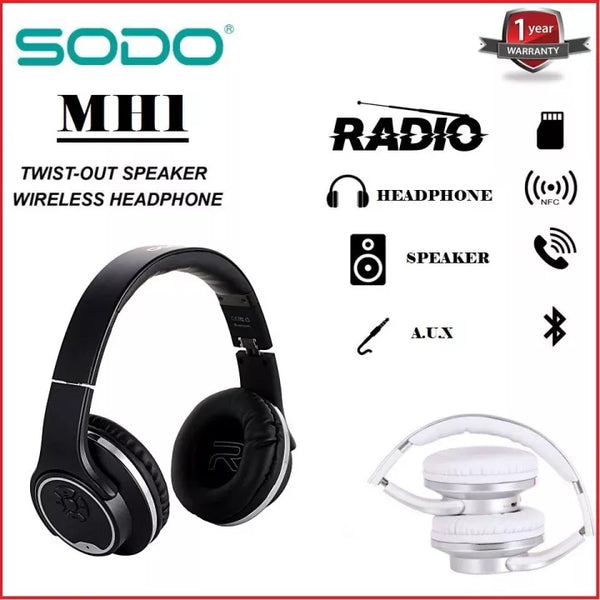SODO MHI wireless Bluetooth Headphone Key features; Voice tone 2in1 Bluetooth Headphone + Bluetooth Speaker Stereo sound, bass. NFC Special for Android System Cellphone Hands-free Calls TF Card MP3 Music Player FM Radio Support Audio input function (AUX) for Smartphone /Computer /MP3MP4 Player