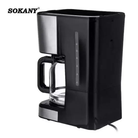Sokany CM-121E Digital Coffee Maker – Anti-dripping function, Permanent filter with handle, Detachable and washable drip tray Key features; Material: Stainless steel + ABS Voltage: 220V Power: 950W Frequency: 50Hz Anti dripping function Permanent filter with handle Over temperature, over-voltage protection, and automatic shutdown Detachable and washable drip tray Anti-skid silicone foot Safety Design: With water level gauge, non-stick, warm board, and heat preservation function