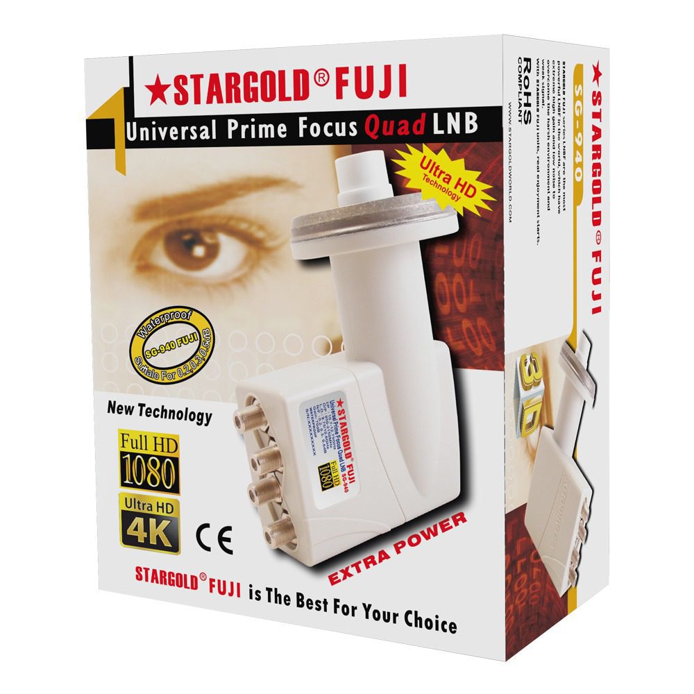 STARGOLD Fuji Universal Satellite Dish LNB With Weather Protection Full HD 4K Quad LNB Digital for Satellite TV, SG-940 Fuji