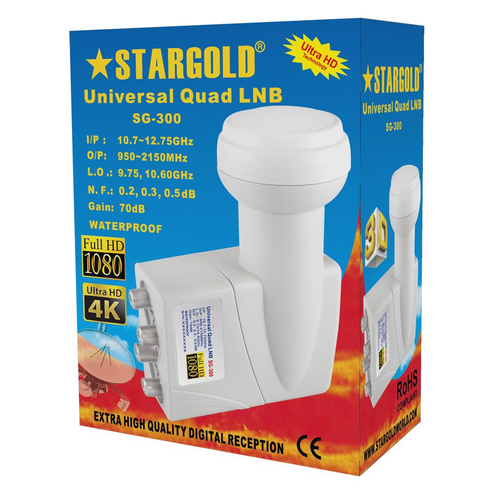 STARGOLD Gain 70dB Ultra Universal Four Way Satellite Dish Quad LNB for Satellite Receiver With Multi Satellite Compatible Solution & Simple Connection