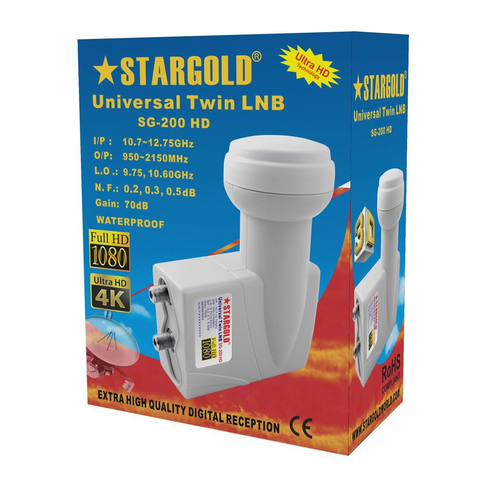 STARGOLD Gain 70dB Ultra Universal Two Way Satellite Dish Twin LNB for Satellite Receiver With Multi Satellite Compatible Solution & Simple Connection