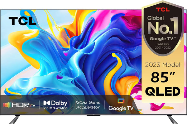 TCL 85C645 85 Inch QLED 4K Ultra HD Android TV With Dolby Vision & Dolby Atmos (2023) Key Features: Over a billion hues: You’re looking at a TV that can display a broader range of colors up to 93% according to the DCI-P3 standard. It’s like peering into a kaleidoscope and exploring an endless world of colors. See details in a detail: High Dynamic Range (HDR), the latest standard for UHD content, provides a superior experience with striking brightness, exceptional shadow detail and vivid colour. Sit still and enjoy incredible picture details as the film makers intended. Bright and brilliant: Even in midsummer when the sun shines into the room, you still can see clear pictures with vivid colors. Enjoy the details hidden in the sunny or shadowy scene. Enjoy an immersive experience: Picture yourself sitting at a theatre and watching the curtains rise as actors enter the stage. With Dolby Vision, you can experience a spellbinding scene right in front of you. You will feel as if you are in a theater rather than just watching it at home. A beautiful mind: AiPQ Engine 3.0 enabled TCL algorithm processes contents with stable and high-quality 4K. Meanwhile, Game Accelerator technology gives you a smoother gaming experience with a refresh rate of up to 120Hz. Never miss a detail in fast moving action: MEMC algorithm reduces motion display blur, deducts image tearing and guarantees a silky smooth scene. No more unbearable latency: Latency can be disappointing, especially for game enthusiasts. With TCL’s latest technology of DLG (Dual Line Gate), the content auto-adjustment function brings a higher refresh rate and a super low latency than ever before. No tearing. No stuttering. Just gaming: The AMD FreeSync technology promises seamless, artifact-free gameplay at almost any frame rate, putting an end to choppy gameplay and broken frames. It is regarded as the next breakthrough in PC and console gaming. Gaming in Dolby Vision: You will always be viewing the best possible image with Gaming in Dolby Vison, allowing you to access every bit of detail and depth the game has to offer. Enhance your visuals and discover more of the game when you play in Dolby. Low input lag and quick response: For gamers, a responsive TV is just as important as one with good pictures. With HDMI 2.1, and ALLM, you’ll experience lowest latency and the best picture settings for gaming automatically. Virtualized 3D sound: DTS-HD and DTS Virtual:X makes enveloping sound that appears to emerge above, beside, and behind you, providing an immersive experience in any room. Theatrical sound enjoyment: Dolby Atmos transcends conventional channel limitations to deliver three-dimensional audio. You can experience astounding clarity, increased emotional impact, and immersive, room-filling sound.