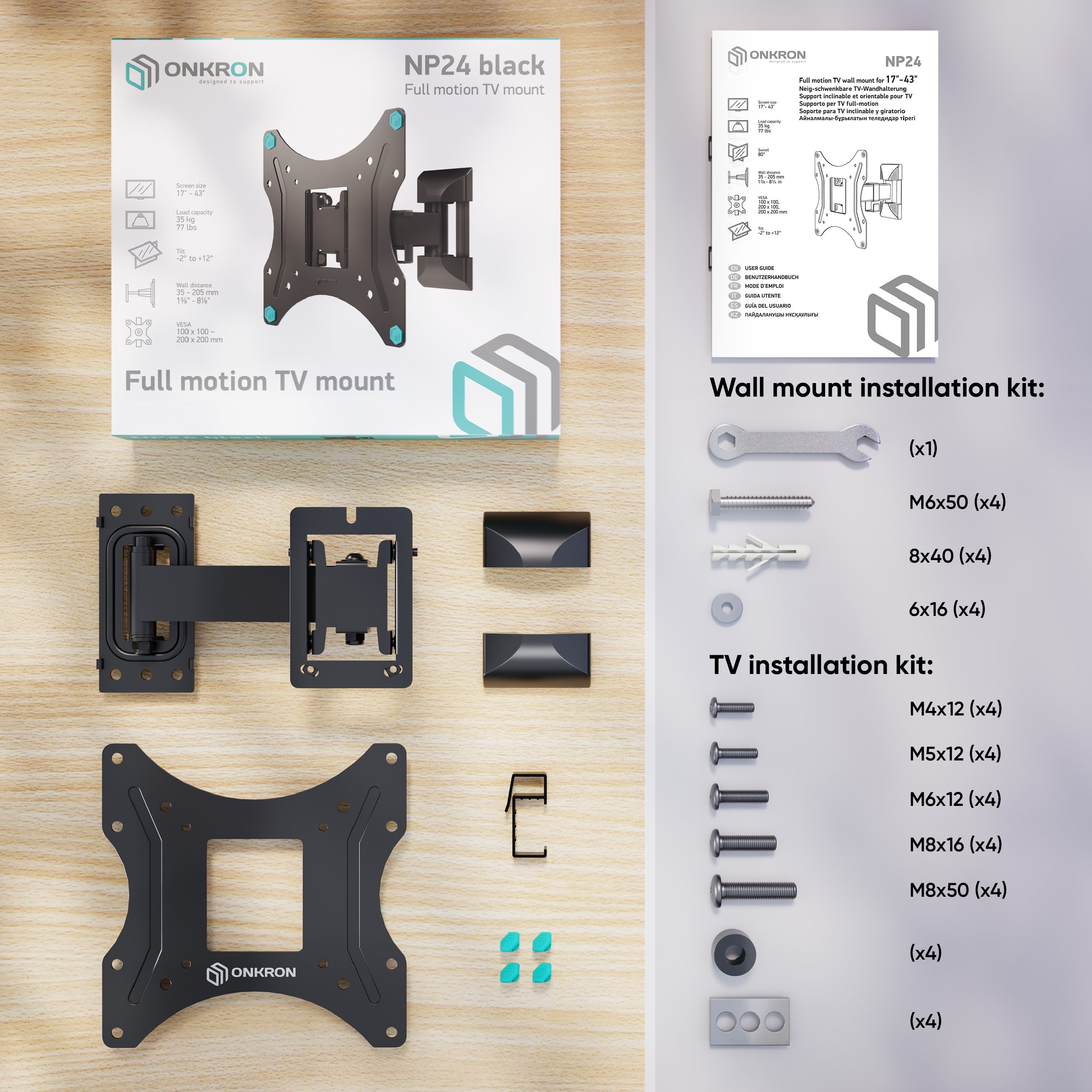 Tilting and swiveling TV bracket for 17″-43″ max 77 lbs, black NP24