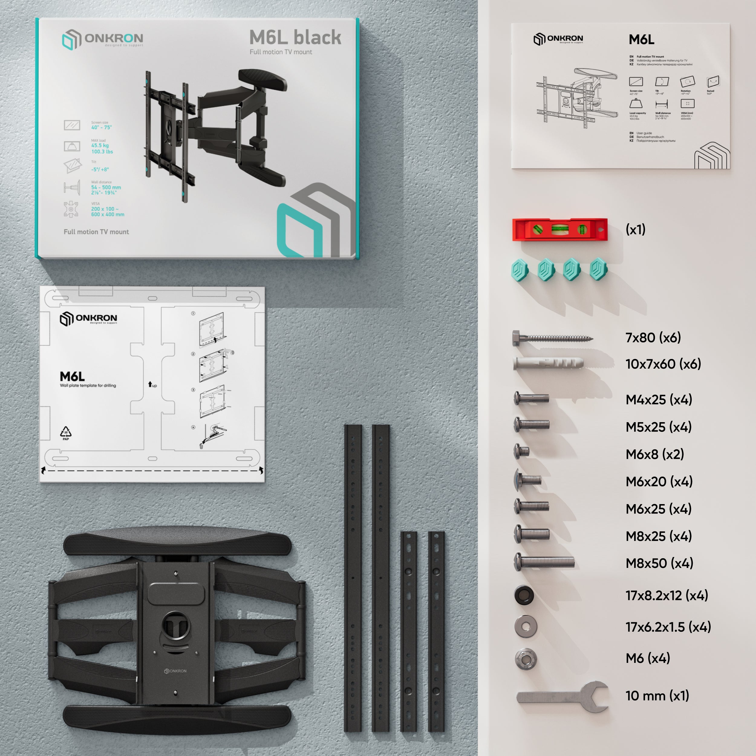 Tilting and swiveling TV bracket for 40″-75″ max 100 lbs, black M6L