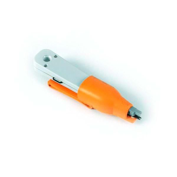 This tool includes accessories that facilitate the insertion and extraction of the cable on telephone strips, data connectors, and connectorized data panels.
