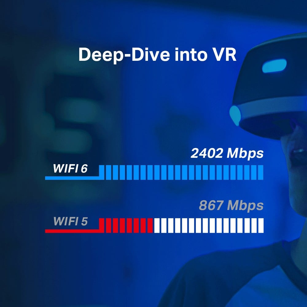 Unrivalled Wi-Fi 6 Speed—Breaks the gigabit barrier with speed up to 2402 Mbps (5 GHz) + 574 Mbps (2.4 GHz)
