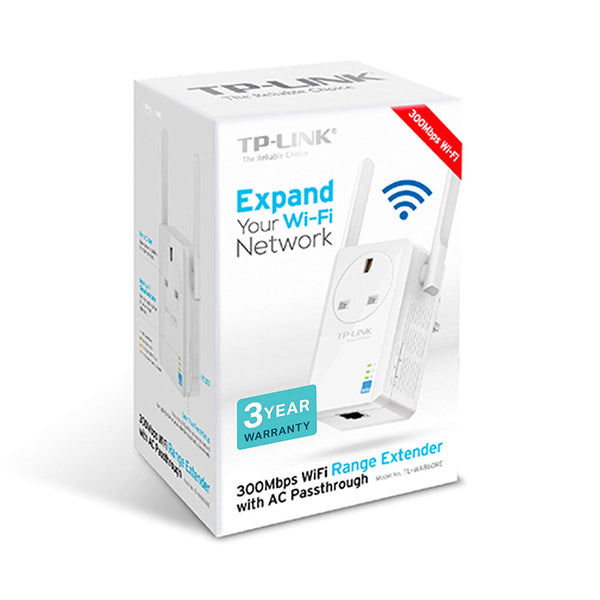 Tp-Link Tl-Wa860Re – N300 Universal Range Extender With Extra Power Outlet, Broadband/Wi-Fi Extender, Wi-Fi Booster/Hotspot With 1 Ethernet Port And 2 External Antennas, Plug And Play, Uk Plug Key Features Range Extender mode boosts wireless signal to previously unreachable or hard-to-wire areas flawlessly* Miniature size and wall-mounted design make it easy to deploy and move flexibly Extra power socket making sure that no power outlet is going to waste 2 fixed external antennas provide excellent Wi-Fi coverage and reliability* Easily expand wireless coverage at a push of Range Extender button 1 Year Warranty
