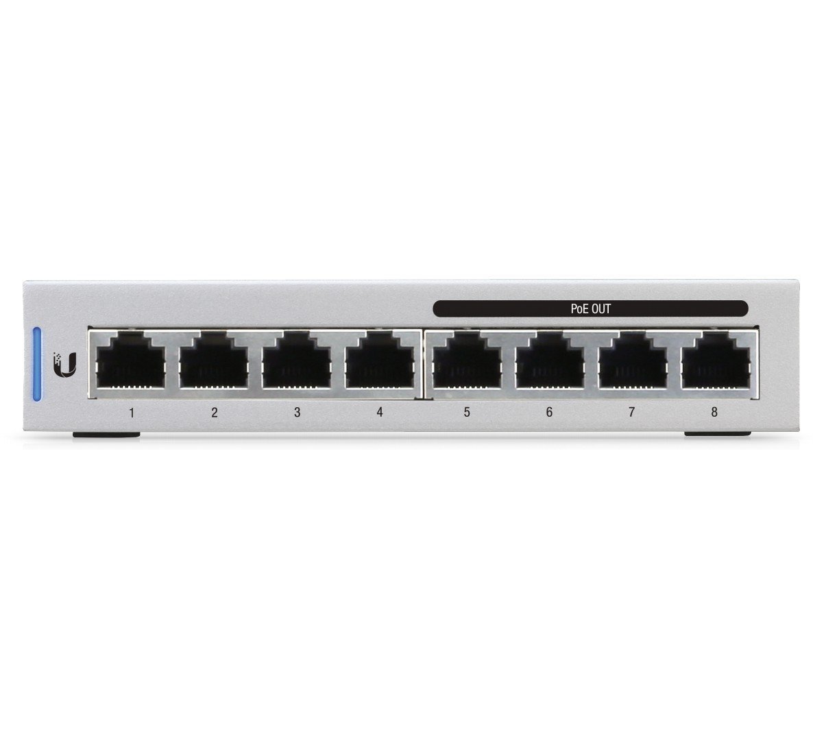 auto-sensing PoE ports deliver up to 15.4W of power per port. The US-8 is a