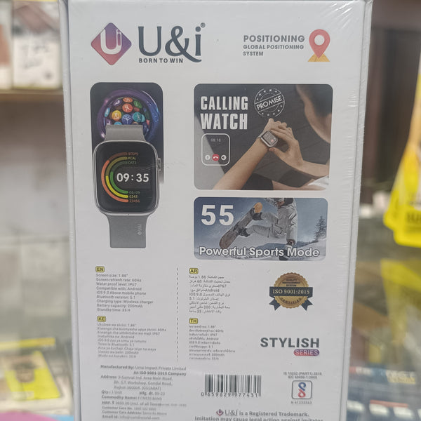 U&I UISW 7767 My Beats Smartwatch Key Features Comprehensive Sales Package: The UiSW-7767 comes complete with features to elevate your lifestyle, including a Pedometer, Calorie Count, Alarm Function, Heart Rate Monitoring, and the convenient Find Your Phone feature. Model Name Recognition: The UiSW-7767 is a part of the U&I MY BEATS collection, reflecting a commitment to superior quality and design. The model name adds authenticity and recognition to your smartwatch. Stylish Design: With a sleek square dial in a classic black color, the UiSW-7767 stands out as a fashion-forward accessory. The 1.69” display offers a perfect blend of style and functionality. Comfortable Rubber Strap: The black rubber strap not only adds a sporty touch but also ensures comfort during prolonged usage. Ideal for both men and women, it complements your active lifestyle. Versatile Usage: This smartwatch is designed for Fitness & Outdoor activities, Health & Medical monitoring, Notifications, and Safety & Security features. It seamlessly integrates into various aspects of your life.