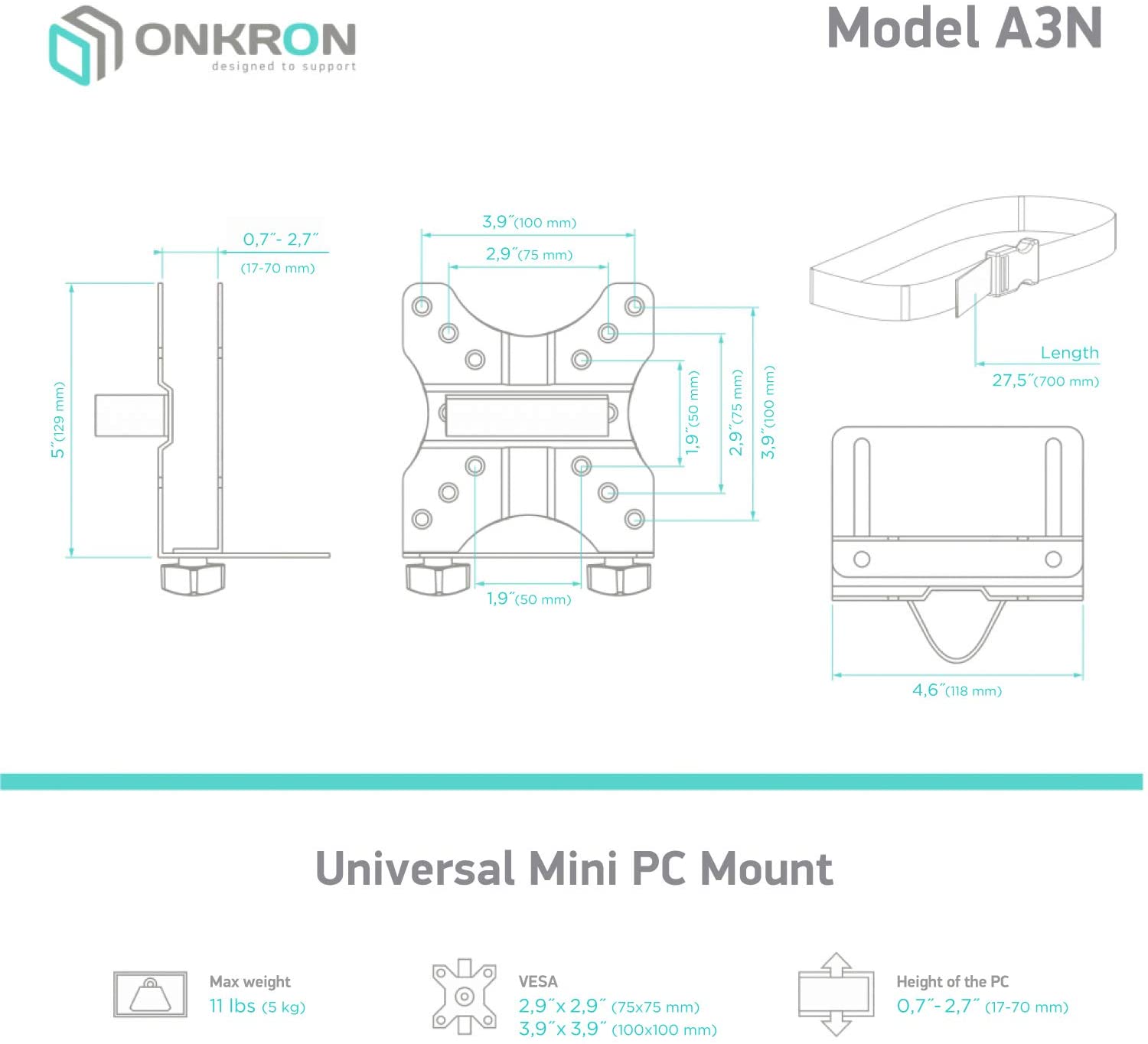 Universal Bracket for Mini PC max 11 lbs, Black A3N