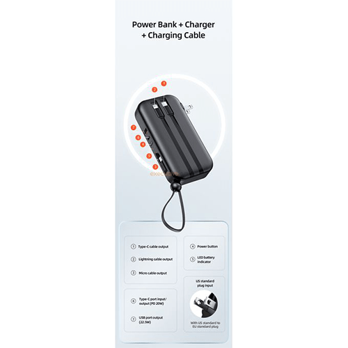 Usams 3 In 1 20W Quick Charge Wall Charger Powerbank With In Built Cables – Kenya