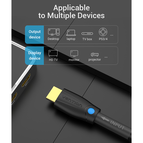 Supporting resolutions up to 4K at 30Hz, the Vention HDMI Cable delivers exceptional picture quality, making it perfect for high-definition content, including videos, detailed graphics, and gaming. It features HDMI 2.0 compatibility, providing a bandwidth of up to 18 Gbps, which allows for the smooth transmission of high-definition video and multi-channel audio formats, including advanced options like Dolby Atmos and DTS