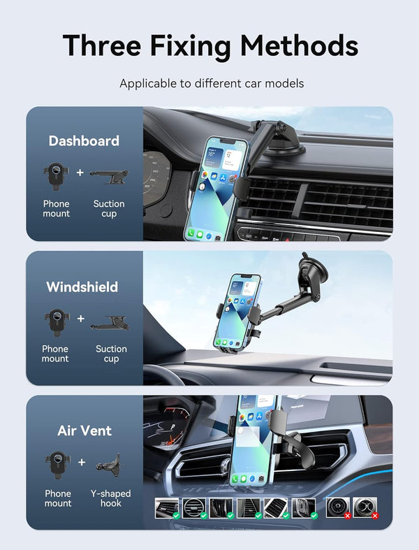 Vention KCVB0 One Touch Holder – Clamping Car Phone Square Stand Mount With Suction Cup Key Features Product Type: Car Phone Mount Compatibility: Fits most smartphones with screen sizes from 4 to 6.5 inches Mounting Method: Air vent mount Clamping Mechanism: One-touch clamping design for easy phone installation Adjustment: Multi-angle rotation for optimal viewing angles Material: High-quality, durable materials Design: Compact and sleek for a minimalist look