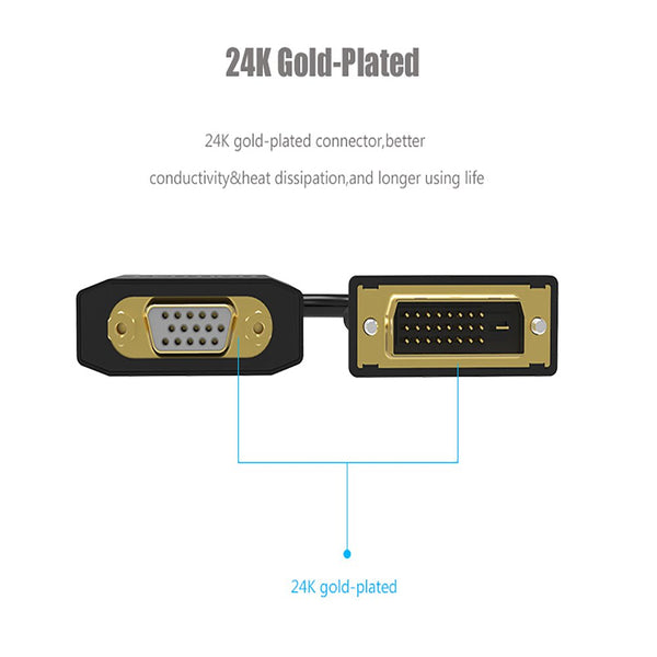 Shell Material : Aluminium Alloy Interface Type : DVI (24+1) Male , VGA Female Resolution :1080 P Transformation Direction : DVI to VGA Only Connector : Gold Plated